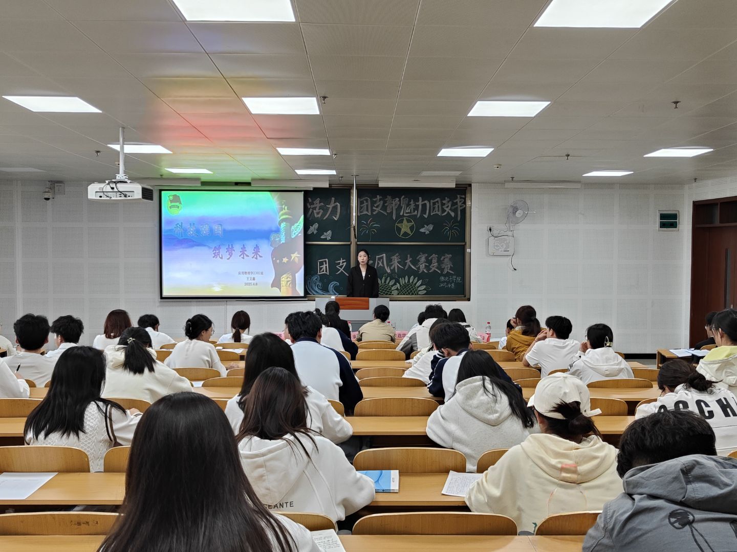 活动伊始,主持人向大家介绍此次比赛的评委以及具体的赛制情况,随后,比赛第一环节聚焦于选手的实务能力,各团支书随机抽取题目展开论述,他们以扎实的知识储备、敏捷的思维能力和出色的表达能力,充分展现了新时代团员青年的风采与担当。第二环节以“科技强国 筑梦未来”为主题,通过PPT生动呈现了各团支部在思想引领、组织建设、志愿服务、学风培育等方面的特色成果,全方位展示了青春集体的蓬勃活力与团支书的独特魅力。经过激烈的角逐后,评委老师依据思想内容、表达能力、应变技巧等维度公正评分,评选出选手晋级决赛。
