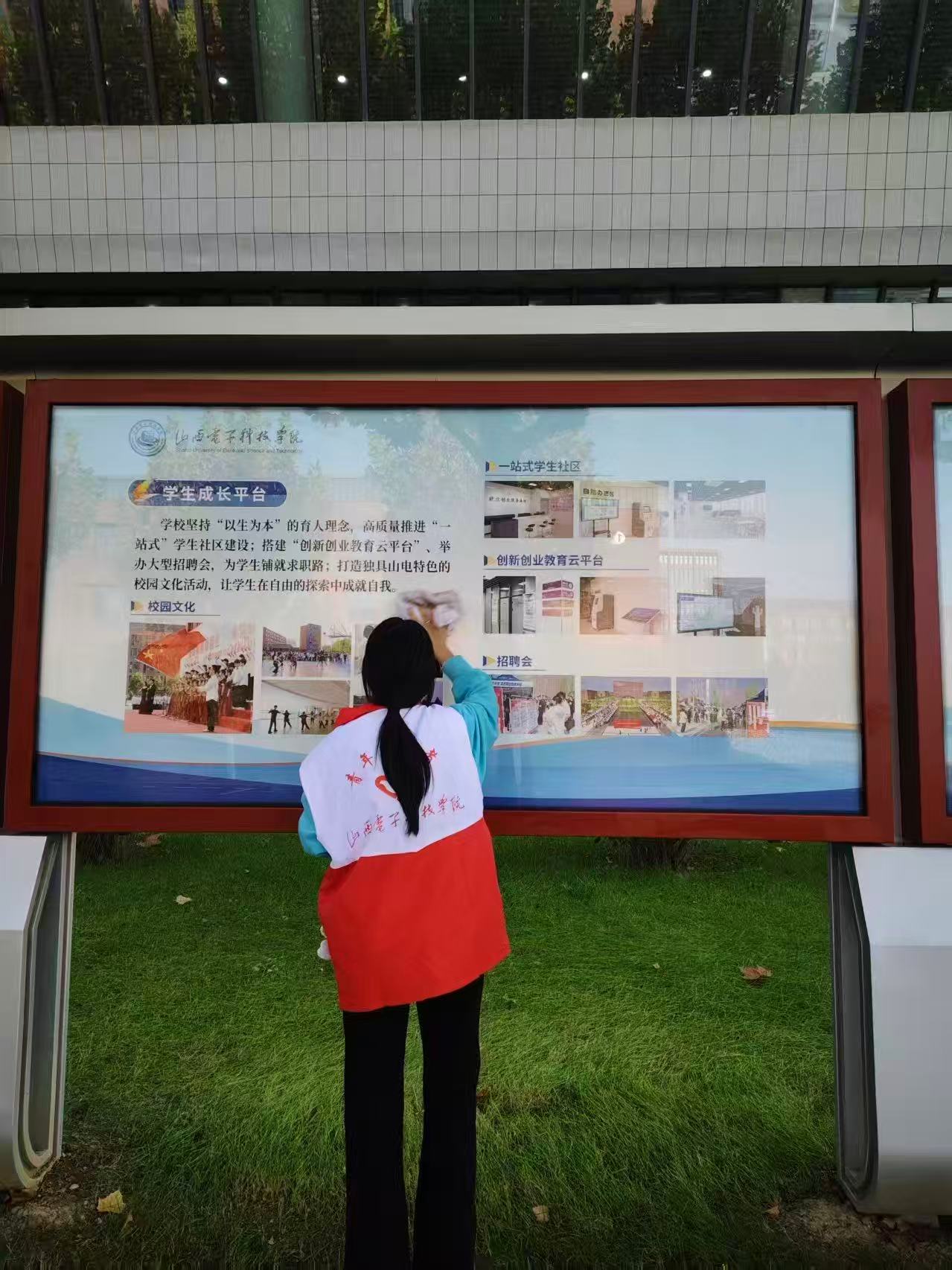 活动中,志愿者们分工明确、协作有序。有的用湿抹布仔细擦拭浮尘,有的蘸取清洁剂耐心清除污渍,有的用干抹布进行收尾抛光,最后用垃圾袋将杂物分装。使布满污渍的公告栏焕然一新,各类信息展示清晰醒目。