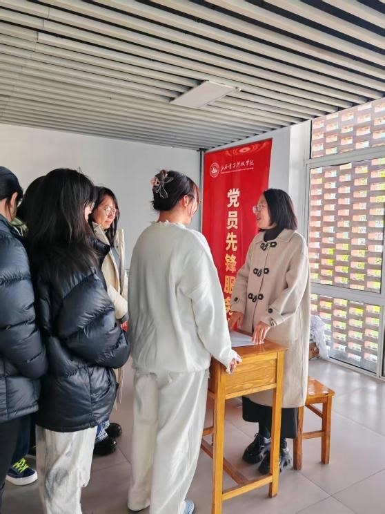 1113日,为切实服务学生群体,精准回应同学们在入党流程中的困惑与需求,一站式社区玉兰苑A党支部在玉兰苑A一层大厅开展“先锋在岗 初心护航”主题党日活动。
